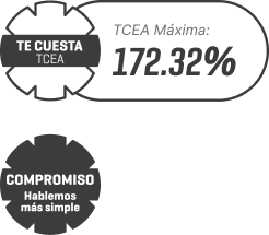 Ejemplo: TCEA máxima referencial calculada con una TEA: 109.83%. Por consumos de S/1,000 a un plazo de 12 meses, pagando cuotas aproximadas de S/136.61, tendrá un total de intereses de S/460.56. En la medida que la tarjeta tenga movimientos y/o saldo deudor se cobrará una prima mensual variable de Seguro de Desgravamen, aplicando una tasa de 3.00% calculada sobre el saldo deudor capital promedio diario del ciclo de facturación, con un máximo mensual de S/14.90, por membresía anual de S/49. Se considera envío de Estado de Cuenta virtual sin costo.